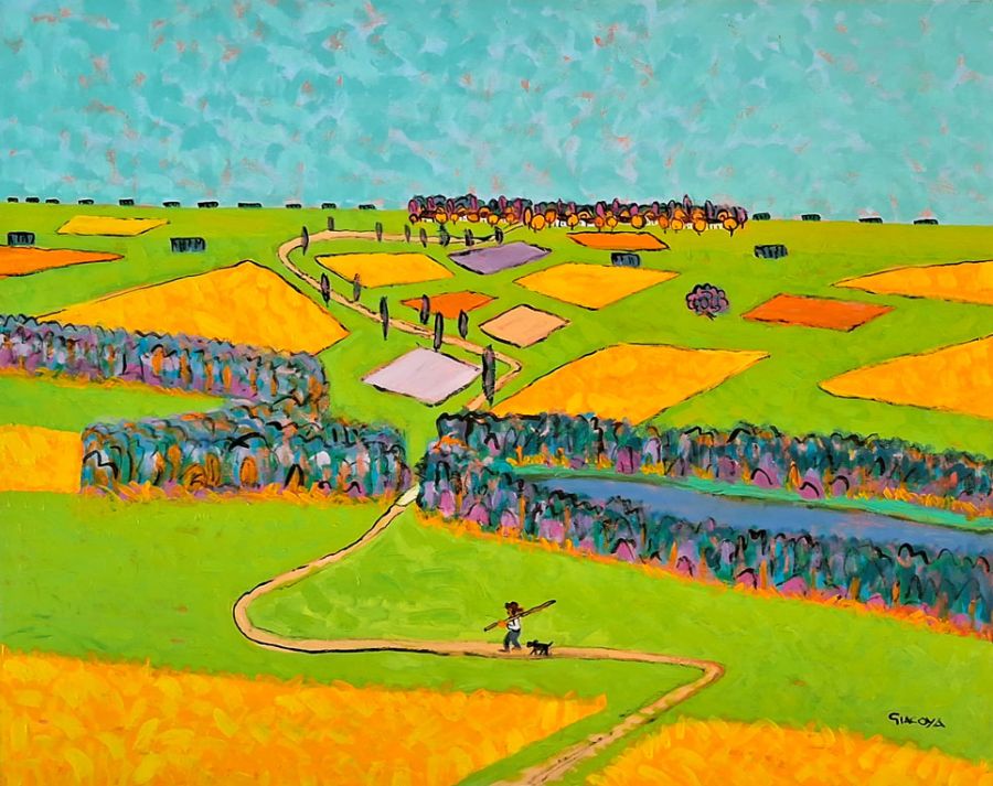 Mario Giacoya: A pure look Though a first impression may lead to the erroneous conclusion that Mario Giacoya's painting is "naif", sufficient reasons prevent its inclusion in this category, namely its wisdom and execution technique. Nevertheless, it is an understandable mistake: a feeling of innocence, based on the transparent spiritual quality of the style, expresses a form of contemplation sugg ...