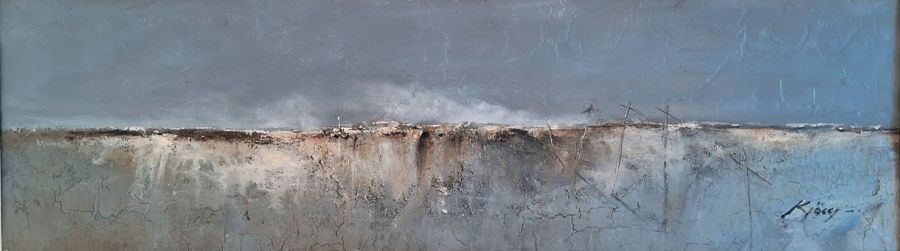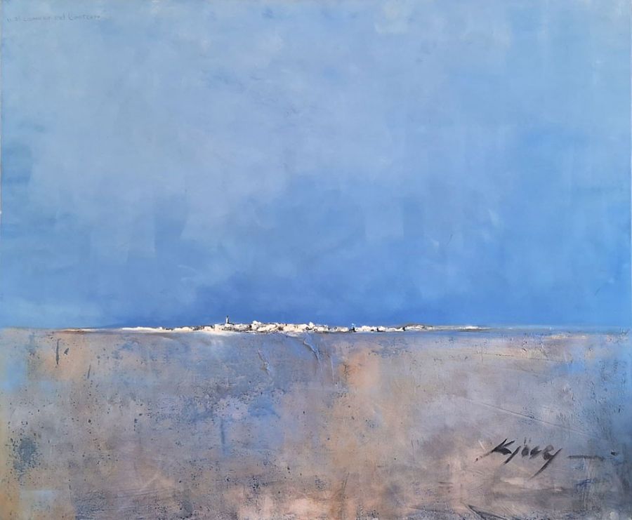 As a painter he frequents a theme of landscapes associated with the marine environment, and in the case of this individual exhibition he chooses to distance the specific data (a lighthouse, some houses, the coastline) to extend the vast surface of a foreground sandy area that can be transformed into an aquatic spot, where he turns his craft into a freer game, bordering on informalism. These exerc ...