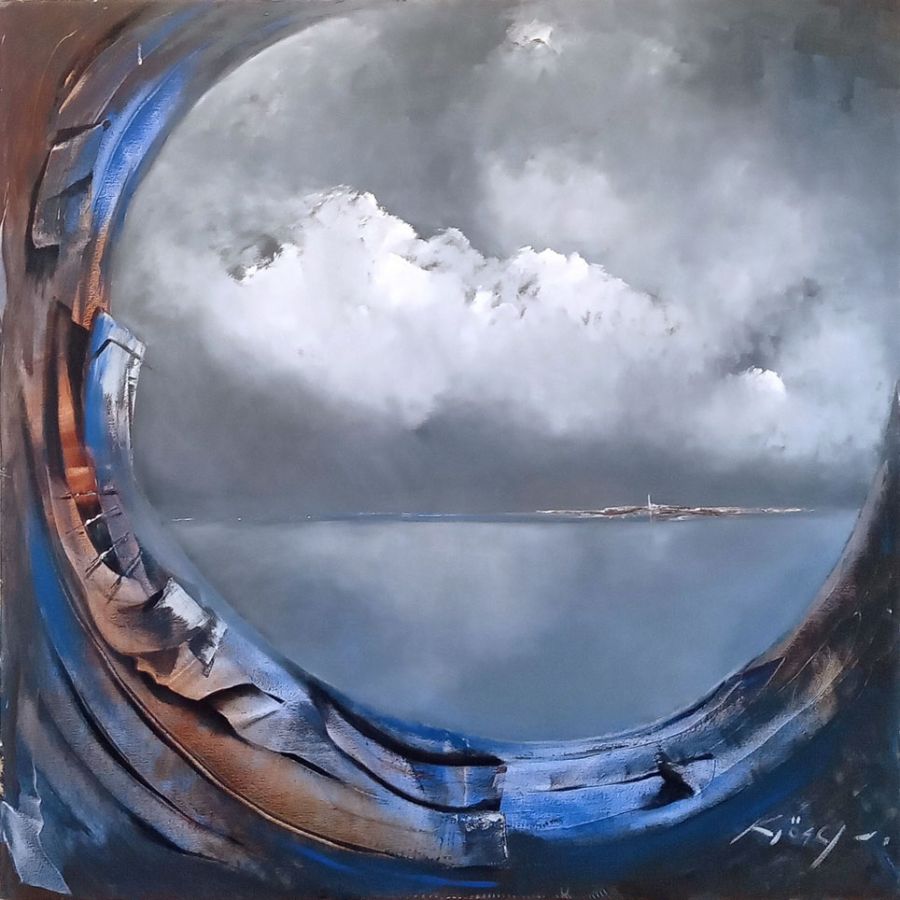 As a painter he frequents a theme of landscapes associated with the marine environment, and in the case of this individual exhibition he chooses to distance the specific data (a lighthouse, some houses, the coastline) to extend the vast surface of a foreground sandy area that can be transformed into an aquatic spot, where he turns his craft into a freer game, bordering on informalism. These exerc ...