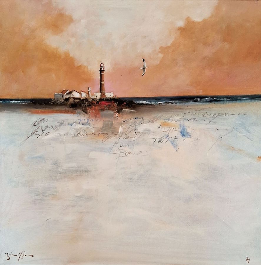 Alvaro Bonilla develops his plastic language with a strong expressive accent on the theme of his boats. The material, the color, the random stain, as well as the assemblages of wood and wires make up his universe of sailboats and ports that navigate between abstraction and figuration, between two waters like our sea river. Large bows, sails spread in the wind, Bonilla's painting is a metaphor fo ...
